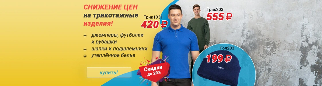 Скидки до 20% на 18 моделей ассортимента трикотажа, среди которых актуальные модели как зимнего, так и летнего гардероба.